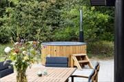 The house is situated on a 1600 m2 large plot surrounded by pine trees. Here, you have your own private oasis where you can fully enjoy the tranquility and leisure of your holiday. The house is optimally placed on the plot in relation to the sun, so you can look forward to plenty of sunshine hours on the lovely terrace. The lawn is large and flat—perfect for playing and ball games—and as an extra bonus, it is equipped with both a hammock, a play set, and a trampoline.