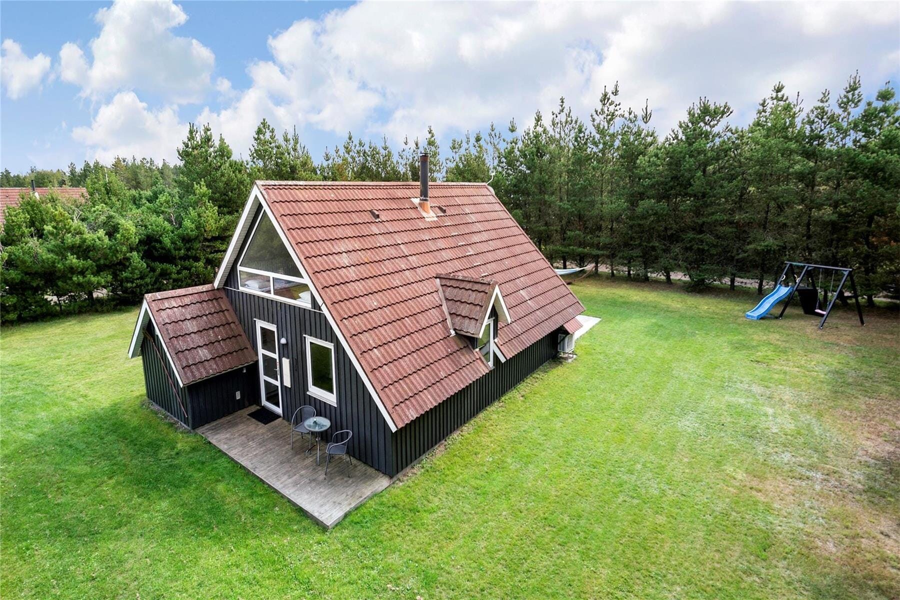 The house is situated on a 1600 m2 large plot surrounded by pine trees. Here, you have your own private oasis where you can fully enjoy the tranquility and leisure of your holiday. The house is optimally placed on the plot in relation to the sun, so you can look forward to plenty of sunshine hours on the lovely terrace. The lawn is large and flat—perfect for playing and ball games—and as an extra bonus, it is equipped with both a hammock, a play set, and a trampoline.