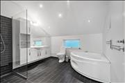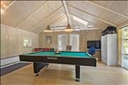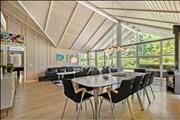 All rooms in the 139 m² holiday home are light and inviting—especially the high-ceilinged living room, where large windows, a wood stove, and nice furnishings contribute to the good atmosphere. From the living room, there is an open connection to a well-equipped kitchen, and from there, you can continue to a spacious entrance that offers both a washing machine and a dryer. The layout also includes two bathrooms, of which the largest has both a hot tub and a sauna, and with four good bedrooms and a loft, there are enough sleeping arrangements for up to ten people indoors. If your entire holiday is not going to be spent on sleep and relaxation, it’s great that the holiday house also features a large activity room where you can play table tennis, table football, pool, and darts.