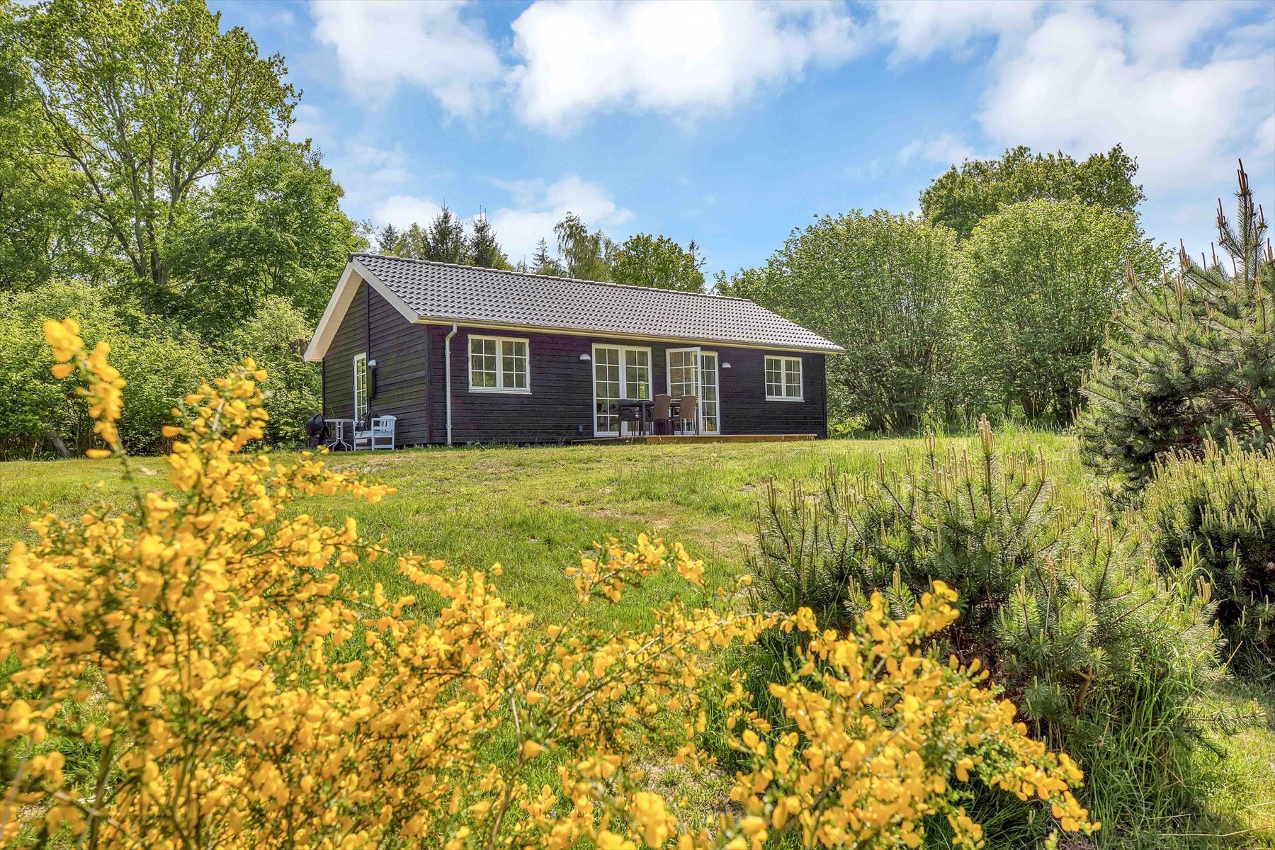 The holiday home is beautifully situated on a small forest hill surrounded by beautiful trees, which gives a magnificent view from the house. A small stream runs through the grounds, where a charming garden bridge beautifully connects the natural surroundings.