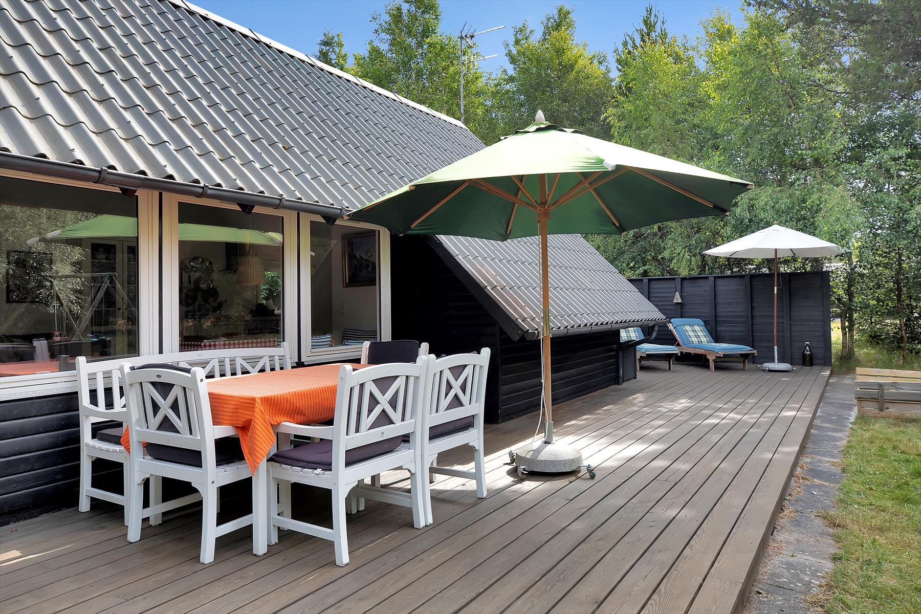 The holiday house contains a cosy reception room, where you can lose yourself in a good book or maybe play a game of cards while enjoying a café latte. You can also use the good internet connection, where you can stream a good movie. In open connection with the reception room you have a fine kitchen with a dishwasher, and here you can help each other preparing a nice lunch. You also have access to a wonderful conservatory. There is a bathroom with shower and three good bedrooms, two of them with double beds, the third has a single and a bunk bed. There is also ca lovely annex with a double bed. Everything in the house is light and inviting, so here you have every possibility for adults and children to really enjoy life. In the fantastic and undisturbed garden you have a football goal, sandbox and swings at your disposal. The whole family can gather around the bonfire spot or settle down in one of the garden’s many cosy corners. Plenty of opportunities for outdoor life.