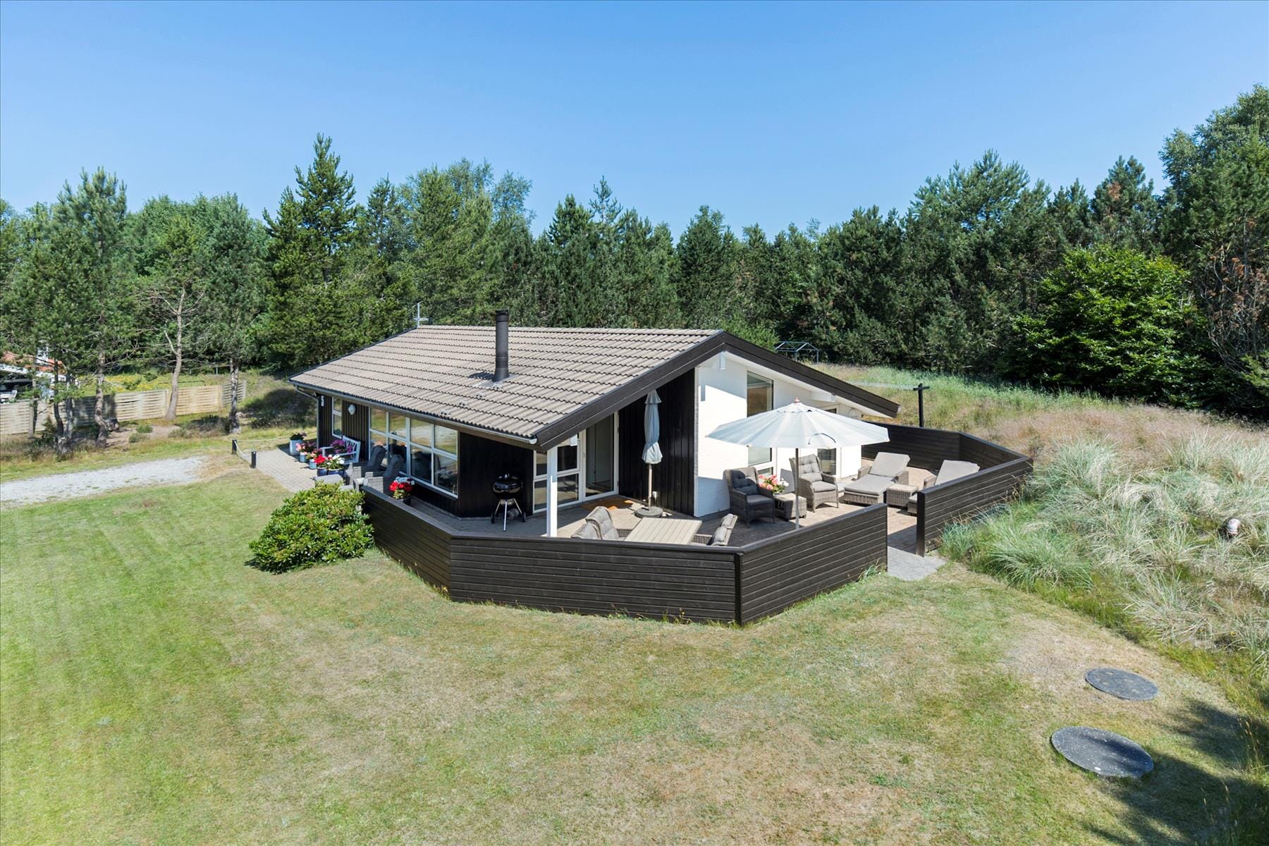 The holiday home is situated on a 2,800 m² plot, providing plenty of space to play and enjoy the fresh sea air. You can start your day with a cup of coffee on the terrace while the birds chirp and the sun slowly rises in the sky. During the day, the garden can be used for relaxing in the sun loungers, reading a good book in the shade, or enjoying a cozy lunch at the garden table. The children have ample space to play and kick a ball around, and as evening falls, you can grill your dinner and enjoy the long, light summer evening under the open sky.