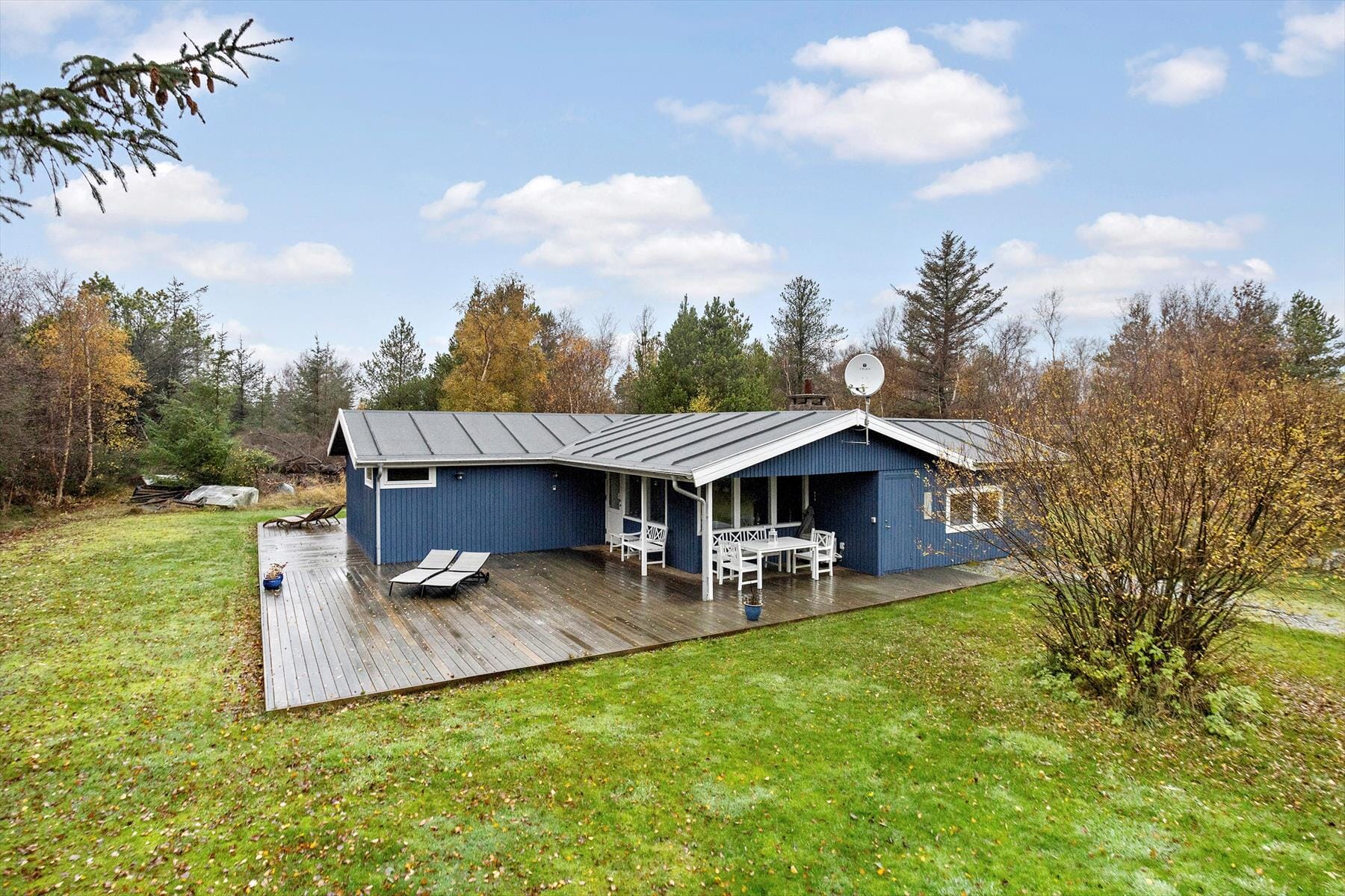 From the living room, you have direct access to a large, sunny terrace where outdoor living truly comes to life. The terrace offers plenty of space to enjoy summer days – from your first cup of coffee in the morning sun to evening barbecues under the light northern sky. You can find a quiet corner overlooking the peaceful natural plot or simply relax in a garden chair, listening to the stillness around you. The surrounding trees and greenery ensure privacy, and with the beach just a short walk away, you can easily grab your towel and head down to the soft Kattegat sand for a swim whenever you like. It’s the perfect setting to enjoy long summer days – whether with family or in peaceful solitude.