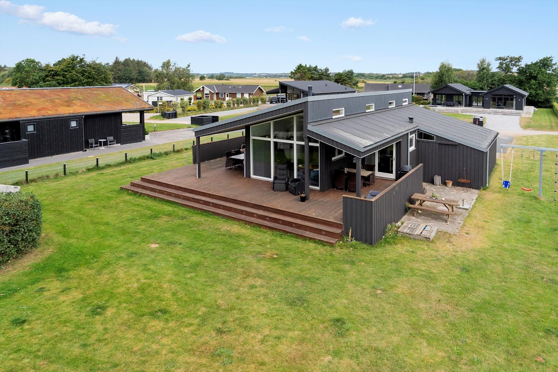 Outdoor living is something truly special at this holiday home. The large terrace quickly becomes a favorite spot, where you can start the day with a cup of coffee and views of the water as the sun slowly rises over the horizon. Here, you can feel the gentle breeze from the Little Belt and hear the calls of the seagulls as the day takes shape. The terrace invites relaxation in the garden furniture, long lunches in the open air, and cozy barbecue evenings where the sky turns golden as the sun sets. The view of the water adds an extra dimension to your stay and creates a constant connection to the surrounding nature. With plenty of space for both two- and four-legged guests, it is easy to enjoy your holiday under the open sky, whether you prefer peace and contemplation or cozy togetherness.