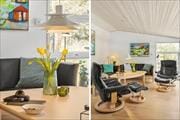 Step into this warm and inviting holiday home, where you will instantly feel at ease. The interior exudes classic summer house charm, and the crackling wood stove in the living room adds to the cozy atmosphere on cooler days. The house is bright and airy, with an open-plan layout connecting the living room, dining area, and kitchen, creating a natural gathering space for meals and relaxed moments. Whether you're sipping coffee at the dining table or curling up on the sofa with a good book, you'll experience a true sense of comfort and tranquility.