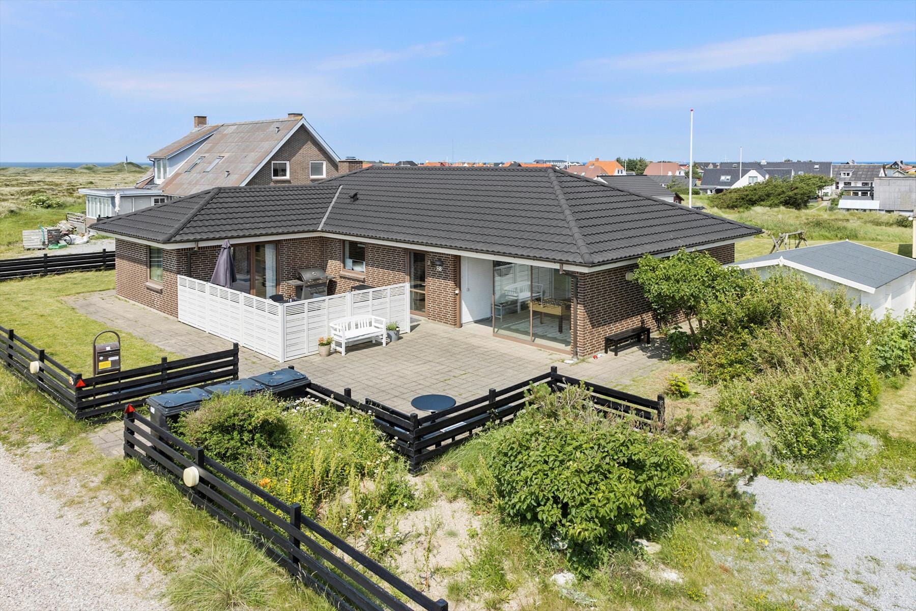 The holiday home at Lervej 8 B is ideally located next to Thy National Park. From the outdoor terrace areas, you can enjoy views of the dunes and the sea. Start your day with a cup of coffee in the peaceful fresh sea air or end it with a barbecue as the sun sets over the North Sea. With multiple terraces, you can always find a sunny spot or a sheltered corner, no matter the time of day. The large plot invites outdoor play and activities, and since pets are allowed, your furry family member can also enjoy the holiday with you.