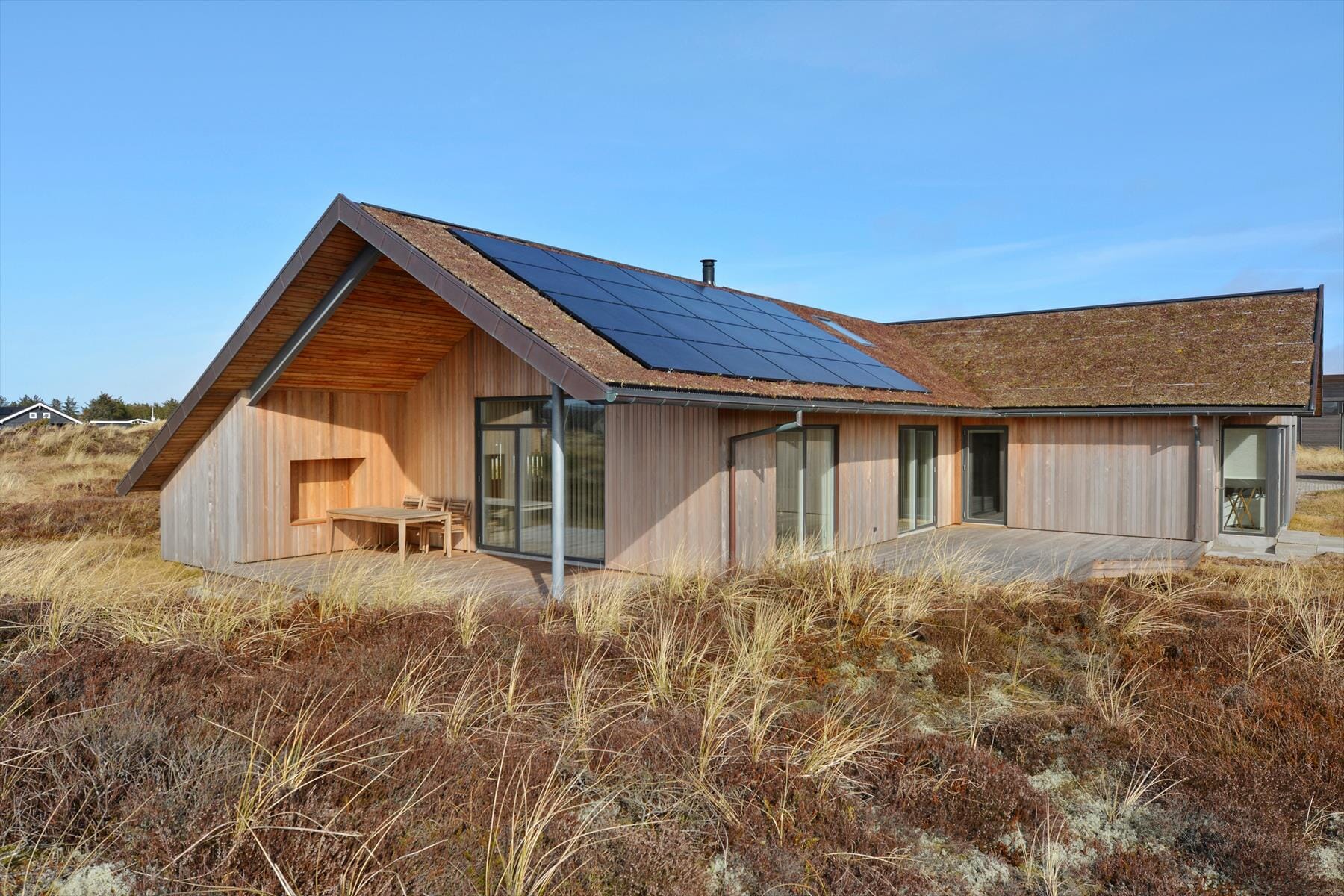 Outside, the holiday home opens up to several large terrace areas where you can enjoy the sun all day long. The terraces give you plenty of opportunities for both relaxation and activity. You can enjoy your morning coffee in peace while the sun's rays warm you, or gather with family and friends for a delicious dinner on the grill when evening falls. The energy-efficient holiday home is equipped with a solar heating system, so you can enjoy the comfort and warmth inside while doing something good for the environment.