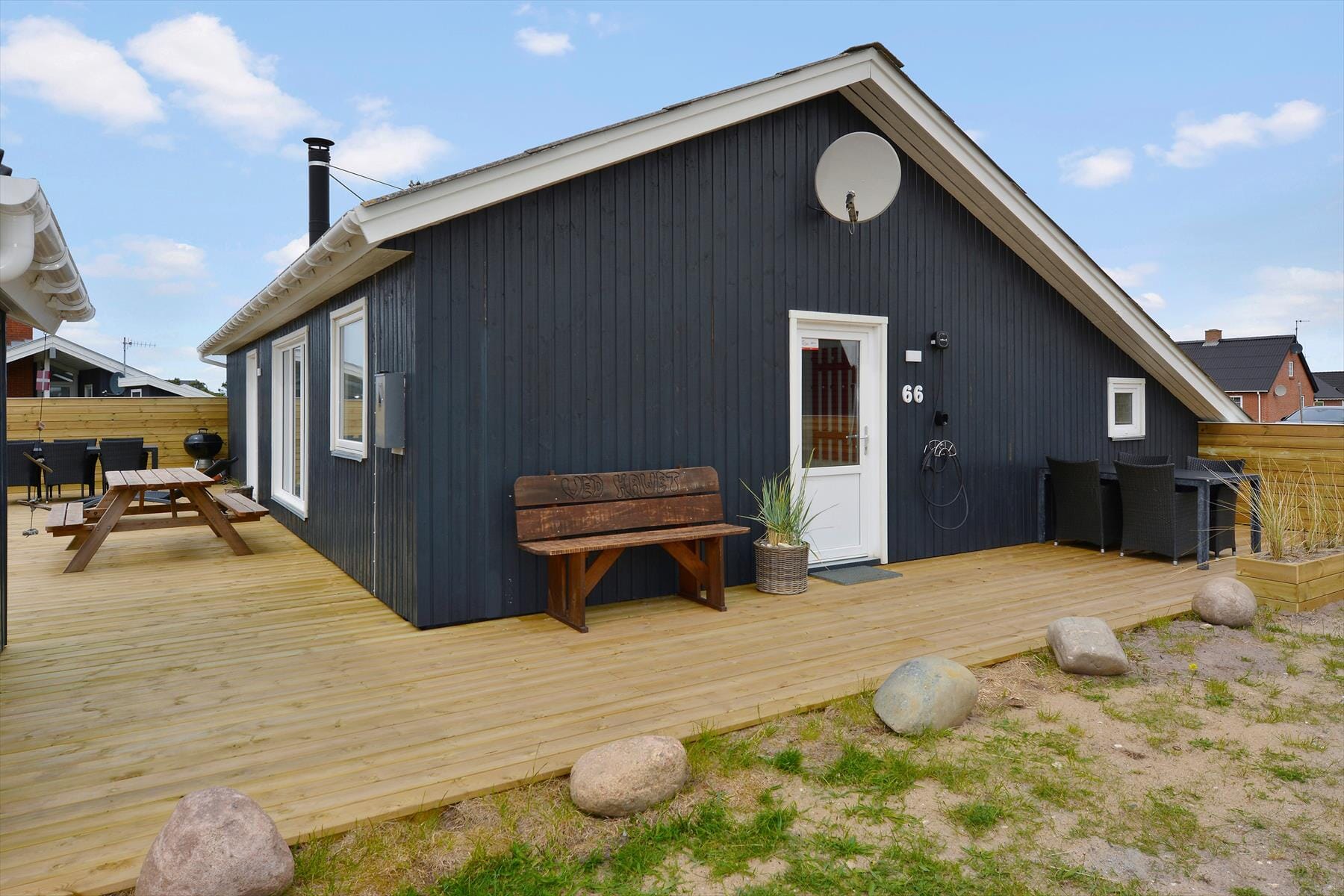 The holiday home at Nordsøvej 66 features a large, open terrace where you can spend many pleasant hours under the open sky. There’s plenty of room for relaxation and play, making it an ideal spot for the whole family—including your four-legged companions, who will also love the spacious outdoor areas. Start your day with a cup of coffee in the morning sun or gather the family for a barbecue on warm summer evenings, all while the sound of the crashing waves reminds you that the beach is only a short distance away. Here, you can truly sense the closeness of nature and embrace life in the fresh air—whether you prefer lounging in a deck chair or playing ball on the lawn.