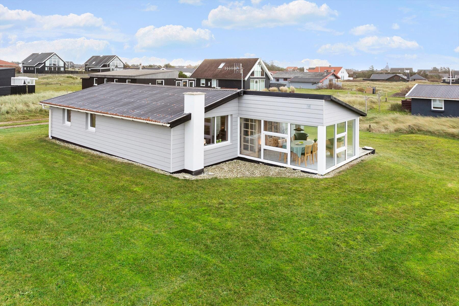 The holiday home’s location on Nordsøvej is ideal for those wanting to experience Vorupør’s charming nature and town life. Outside, you’ll find a small terrace, perfect for enjoying your morning coffee as the first rays of sunlight warm you. When the weather allows, the terrace is a lovely spot to spend the afternoon with the sound of the sea in the background. After a day of exploring Vorupør, you can relax here and soak in the tranquillity, interrupted only by the sounds of nature.