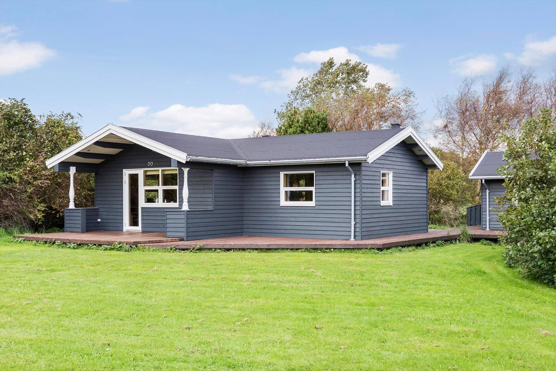 The holiday home is located on a peaceful plot, where you can truly connect with nature. Start your day on the lovely terrace with a cup of coffee, accompanied by birdsong, or spend relaxing afternoons with a good book in hand. The terrace is the perfect gathering spot for family barbecues, where you can enjoy each other’s company under the long, light summer evenings. The surrounding natural landscape offers privacy and tranquillity, with plenty of space for both quiet moments and play in the open air.