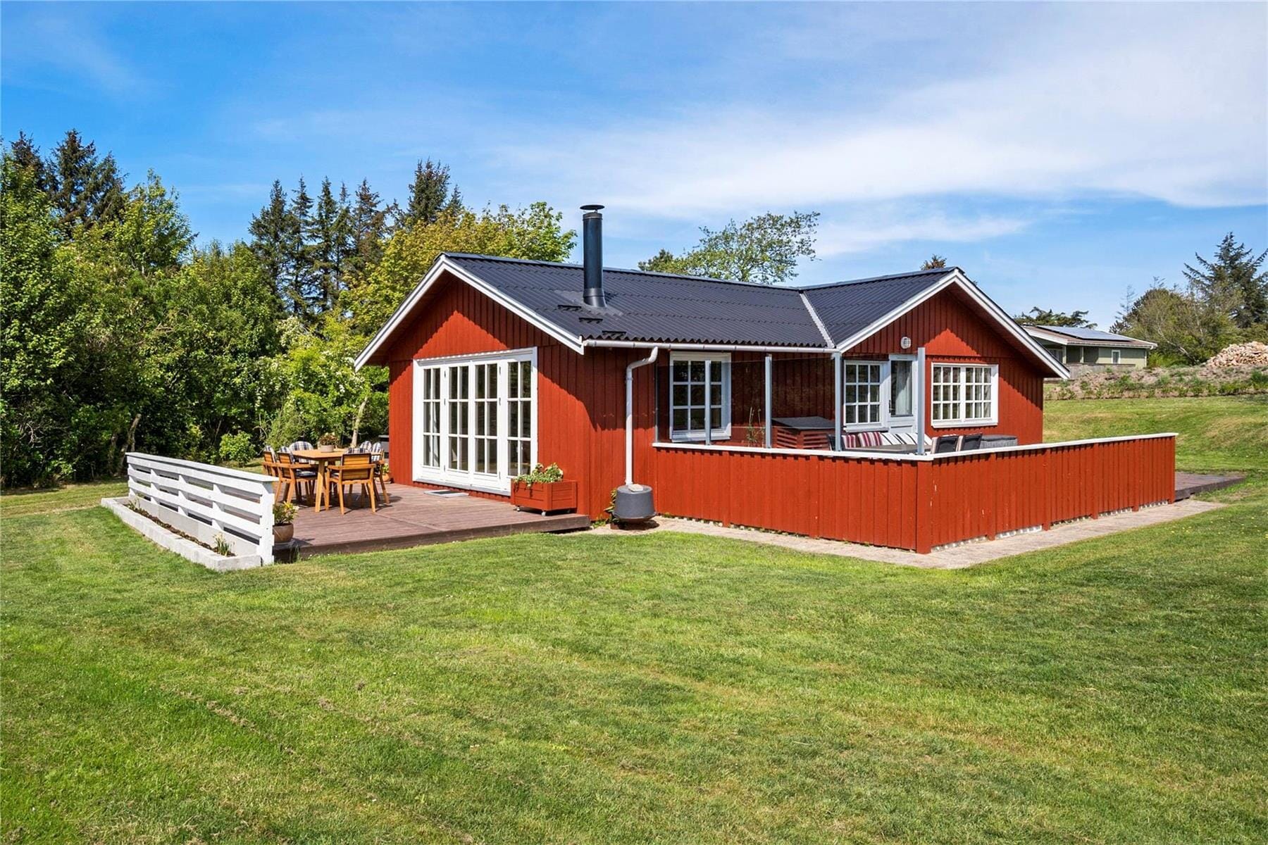 Step inside and be greeted by a warm and inviting atmosphere. The large windows in the living room flood the space with light and offer fantastic views of the surrounding natural landscape. The interior is cozy and functional, with a focus on comfort and togetherness. It’s the perfect space to gather with family for a delicious meal, enjoy conversations, or unwind on the sofa with a book. The open-plan kitchen ensures you can stay connected while preparing meals.