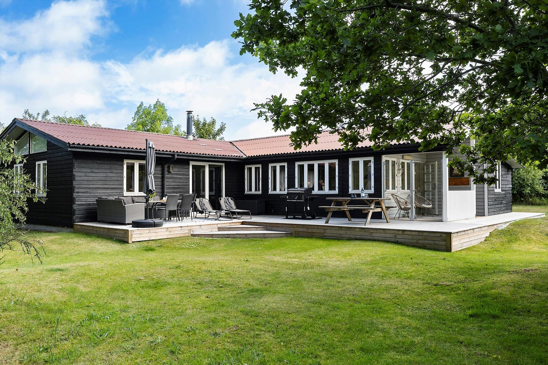 The holiday home’s terrace is a lovely place to spend time when the sun is shining, and you feel like enjoying the fresh air and holiday atmosphere. Sit back in the garden furniture with a cup of coffee in the morning or relax in the lounge chair with the sun on your face. The terrace is perfect for BBQ evenings, where you can enjoy a delicious meal under the open sky. Surrounding the house, you’ll find beautiful, scenic surroundings where you can explore or simply enjoy the silence. With the tranquil atmosphere and wonderful setting, it’s easy to let the peace of the holiday take over.
