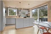 The thoughtful layout of the house makes it perfect for two families who want to vacation together while maintaining privacy. The cozy living area features a wood-burning stove that sets the right mood as the evening settles in. The kitchen is open to the dining area, where you can enjoy meals together, and the bright bedrooms ensure a restful night’s sleep. The classic summerhouse charm immediately brings a sense of relaxation.
