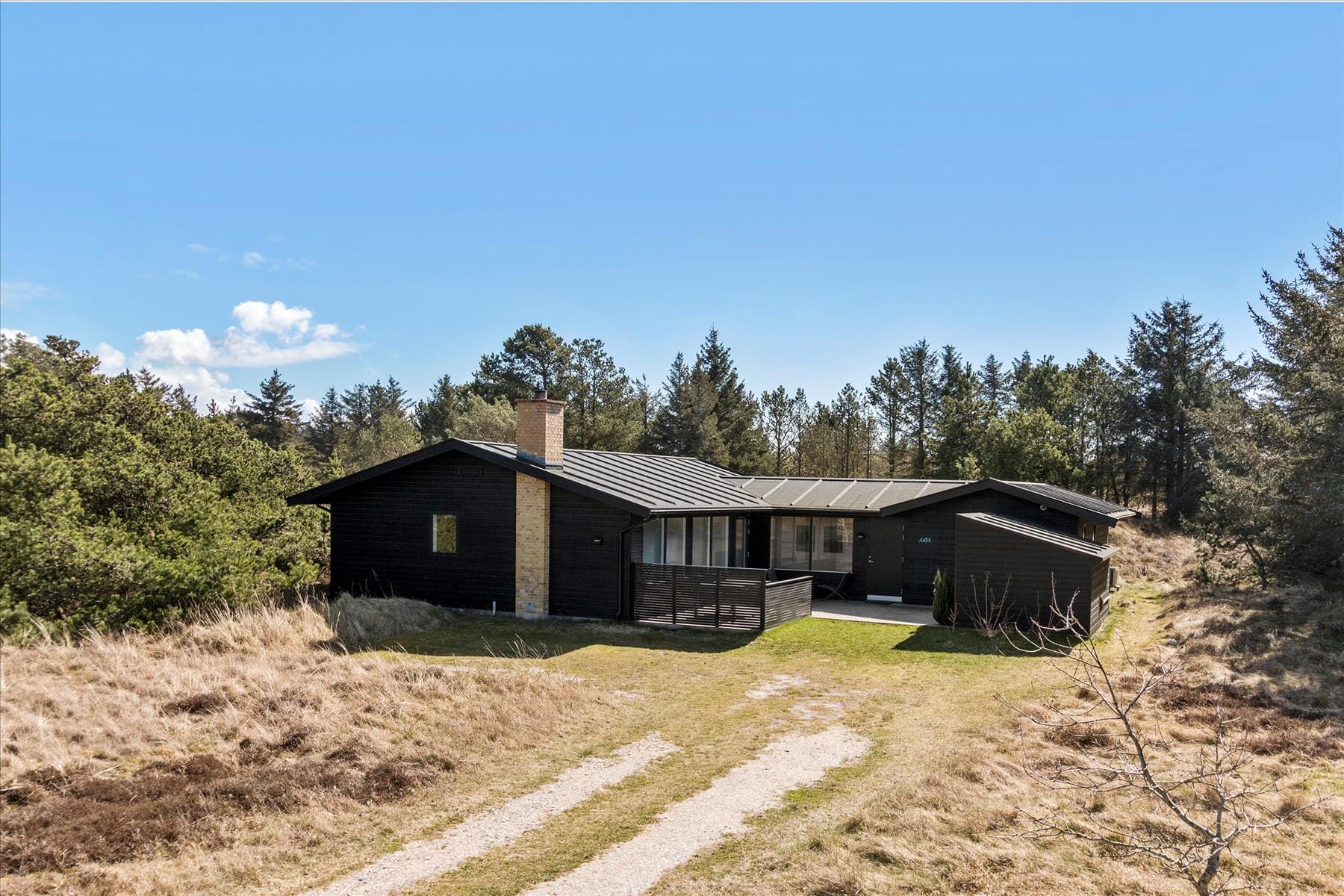 The thoughtful layout of the house makes it perfect for two families who want to vacation together while maintaining privacy. The cozy living area features a wood-burning stove that sets the right mood as the evening settles in. The kitchen is open to the dining area, where you can enjoy meals together, and the bright bedrooms ensure a restful night’s sleep. The classic summerhouse charm immediately brings a sense of relaxation.