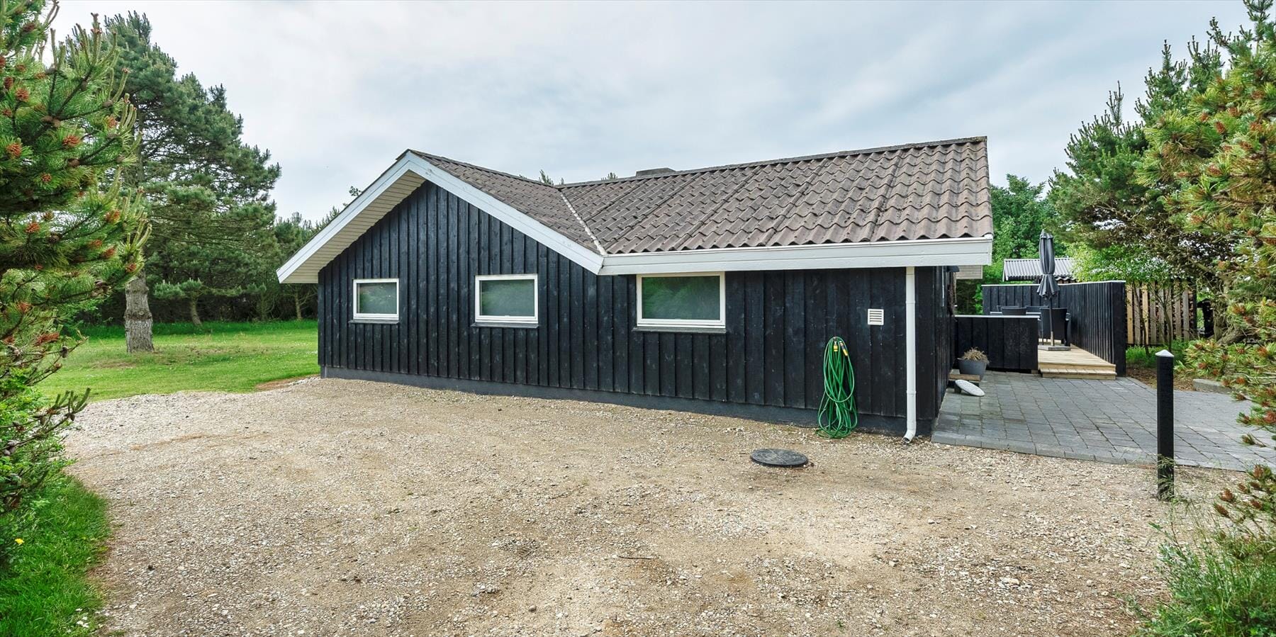 House-ID: VE004Bright and tasteful holiday home for 6 people, about 900 meters from the beach, on a large natural plot. Living room with fireplace and TV with 5–8 German channels. Open-plan kitchen with dishwasher, microwave and fridge/freezer. There are 3 bedrooms: DB + 2B + 2B. Bathroom with shower/WC, sauna, washing machine and tumble dryer. Heat pump. Internet connection (Wi‑Fi). Large, partly fenced terrace, swing. No pets. Smoking is not permitted. Year of construction 1984. PETS: Dogs are not allowed. GOOD TO KNOW: No rentals to youth groups. Free parking in front of the holiday home. Consumption is billed based on meter readings. Water consumption is included in the price. Cleaning is included in the price. 3 bedrooms. 1 with double bed 180x200 cm. 2 with 2 single beds (each 90x200 cm). It is possible to rent a cot and a high chair at the office. 4 sun loungers. Outdoor seating area. Bed linen is not included but can be purchased. NEAREST SHOPPING: Bakery 900 m from the holiday home. Supermarket 1.5 km from the holiday home. PUBLIC TRANSPORT: The nearest train station is in Oksbøl, about 10 km from Vejers.