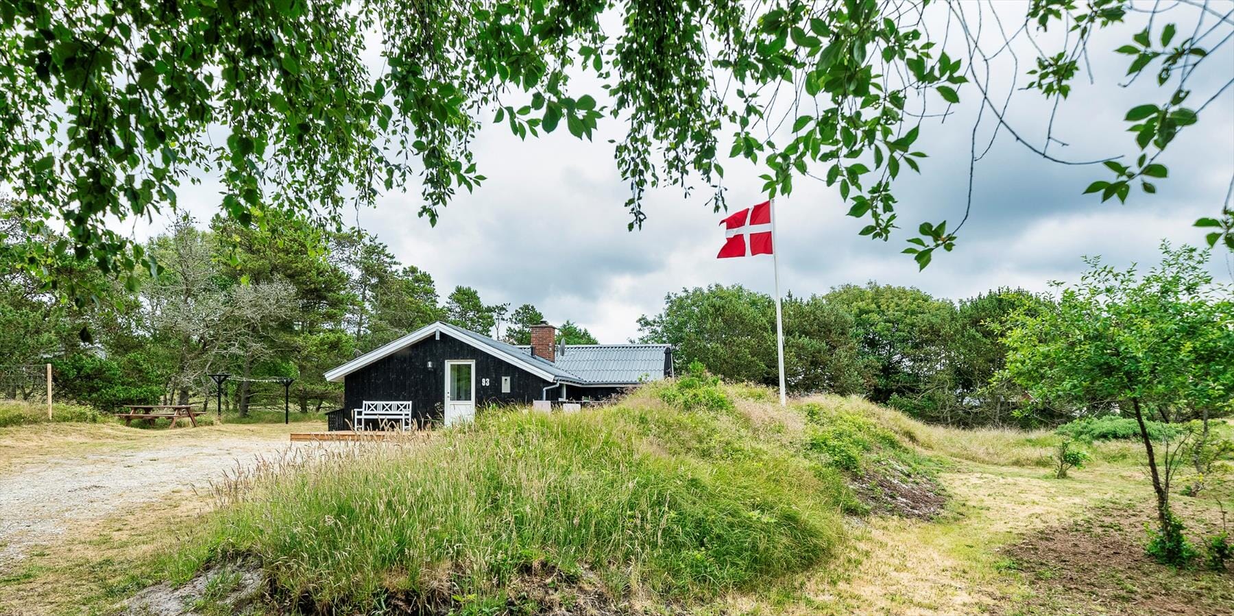 The house contains: The entrance is in open connection with the living area of the house. From the entrance you enter the kitchen. The kitchen includes a fridge/freezer from 2021, brand new countertop with new sink and faucet, dishwasher as well as a brand new built-in oven, ceramic hob, extractor hood from 2024 and microwave. The open living room offers a lovely sofa group with view of the terrace and the beautiful natural plot. The living room features a wood-burning stove, smart TV with Danish channels via Stofa, and satellite dish with foreign channels. Wireless internet is available as well as a heat pump. The living room also includes a dining area at the end of the room. From the living room there is access to 3 bedrooms: DB + DB + 2B. Bathroom with shower/WC, sauna. In the entrance hall there is a washing machine and a tumble dryer. Lovely wooden terrace facing south — partially covered. Heat pump. Wireless internet access (fiber internet 30/30). In October 2021, 2 new beds measuring 180x200 cm were added.