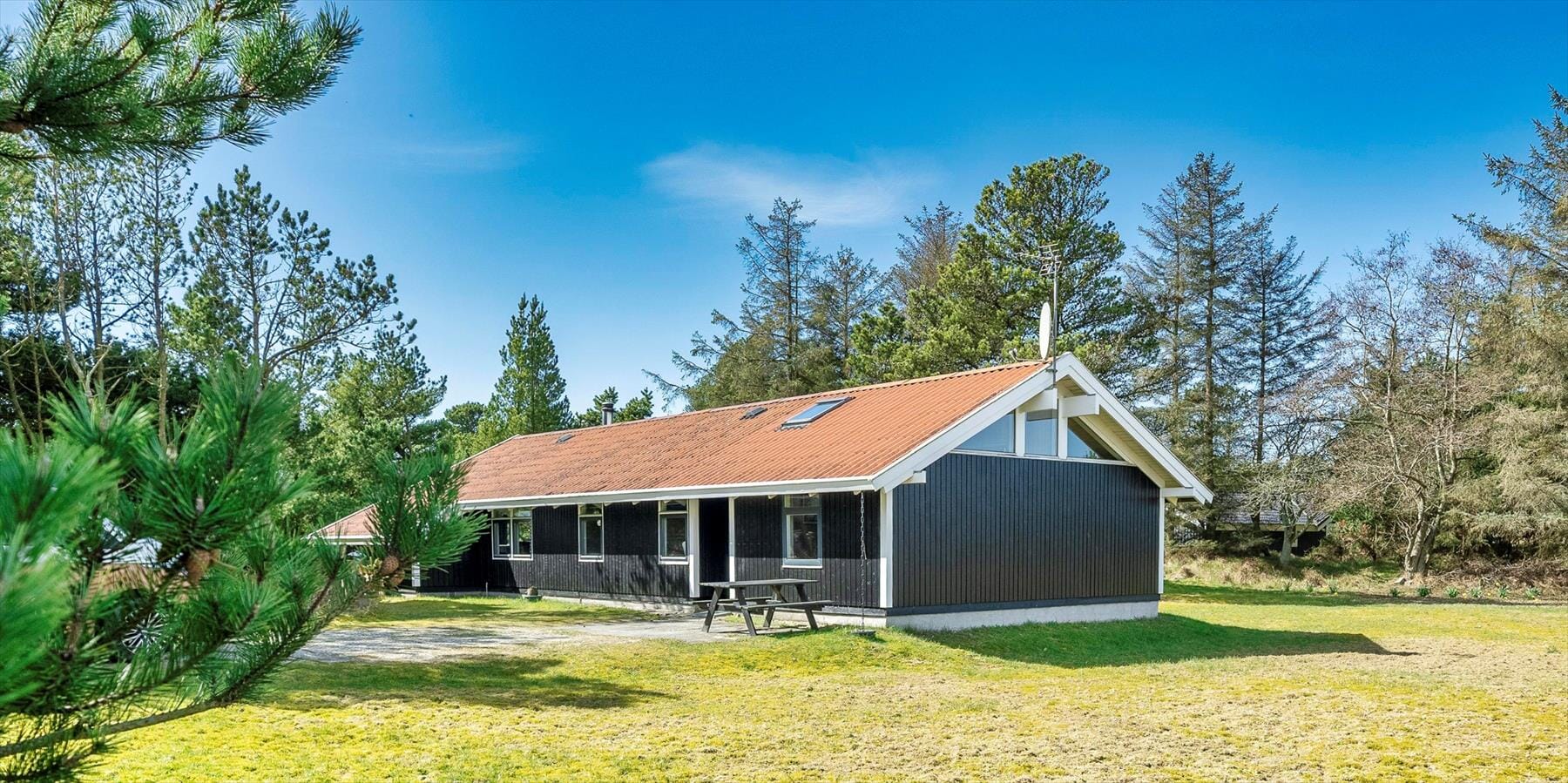 House-ID: VE437This family‑friendly holiday home accommodates 6 people and is about 1.5 km from the beach. On the large open plot children have their own play area with a swing frame, sandbox and a small football pitch. The entire holiday home features wooden floors. The living and dining area includes a wood‑burning stove and a small cosy nook/alcove where you can read while still being part of the room. German TV channels can be received via satellite dish. The new kitchen is equipped with a hob with ceramic cooktop, oven, dishwasher and fridge/freezer. There are 2 bedrooms with double beds and 2 bedrooms with two single beds each. A separate storage room provides ample space for items not used daily. There is a guest WC with shower and washbasin. The large bathroom has a shower, WC, washbasin, and the washing machine is located there. The terrace is nicely laid out and a small part is covered. The holiday home has internet access (Wi‑Fi). No pets are allowed except one small dog with a maximum back height of 30 cm; cats are not permitted. Smoking is not allowed. The holiday home was built in 1995 and renovated in 2012.