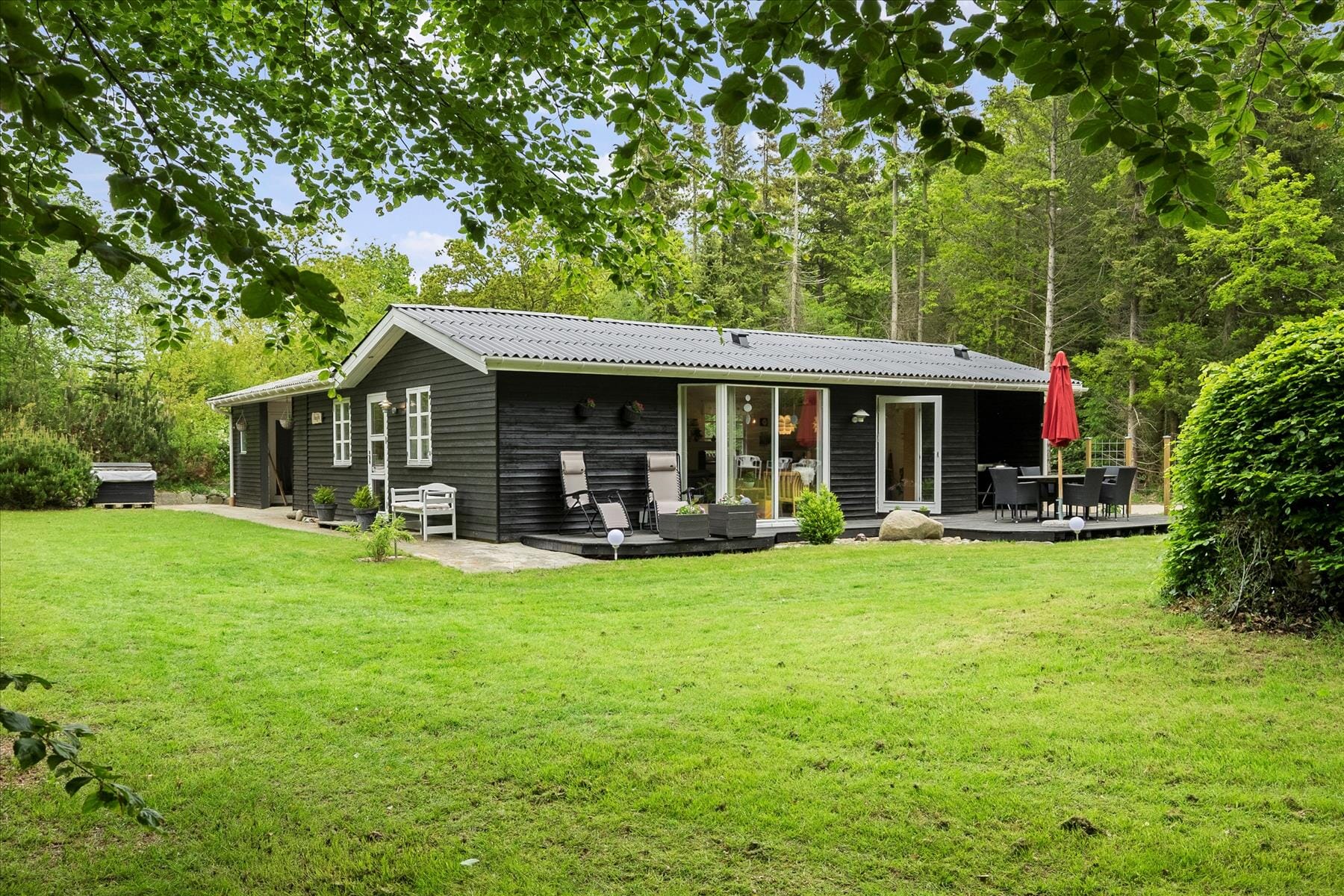 It almost feels like living right on the edge of the forest when you're gathered around the firepit or playing garden games with the family in the green surroundings – and if you're in the mood to see the water, it's just a 10-minute walk to the Limfjord and the local beach.