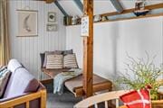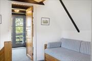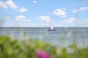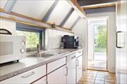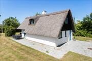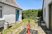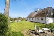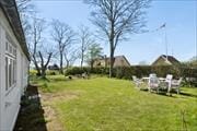 Older holiday home in village on southern Samsø with views of fields and the coast